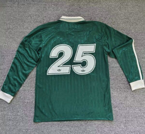 Maillot Oasis 2025 : découvrez l’élégance vintage de cette édition spéciale en vert forêt pour la saison 2025-2026. Ce modèle à manches longues célèbre l’héritage musical de Manchester avec un design rétro sophistiqué, agrémenté du logo emblématique « Oasis » et de détails crème raffinés.